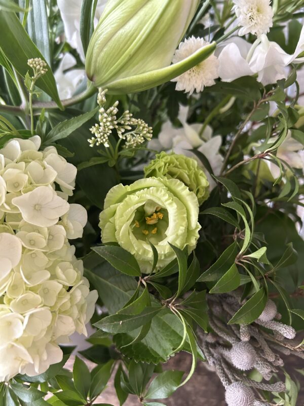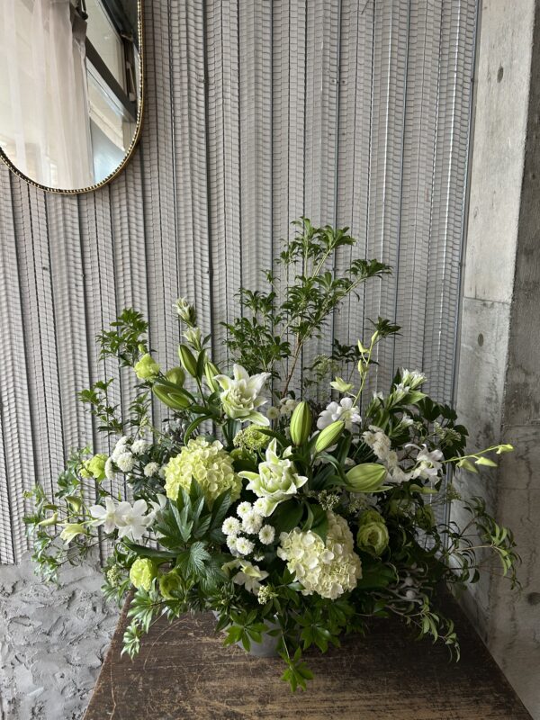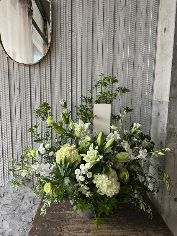 今回は白がご希望で作らせて頂きましたが、故人の方が好きだったお花や色を希望される方もおられます。