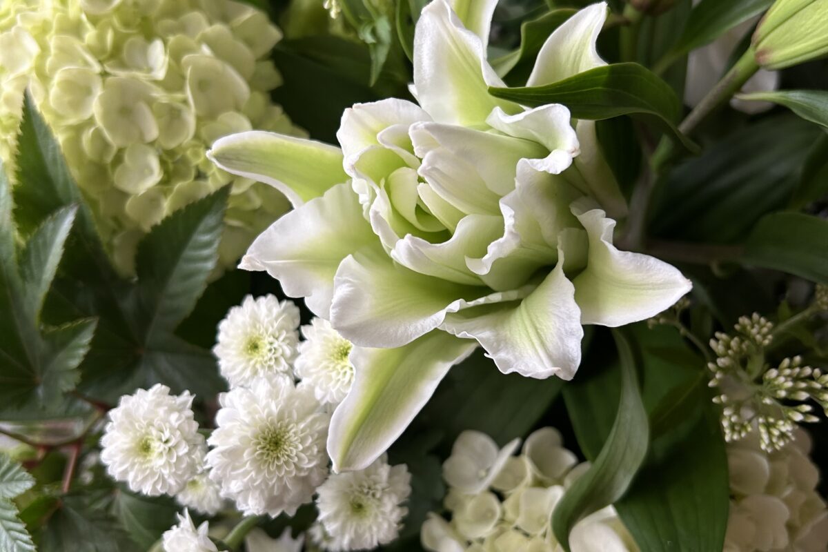 ご希望は『白が基調で、百合を入れて欲しい』との事でした。